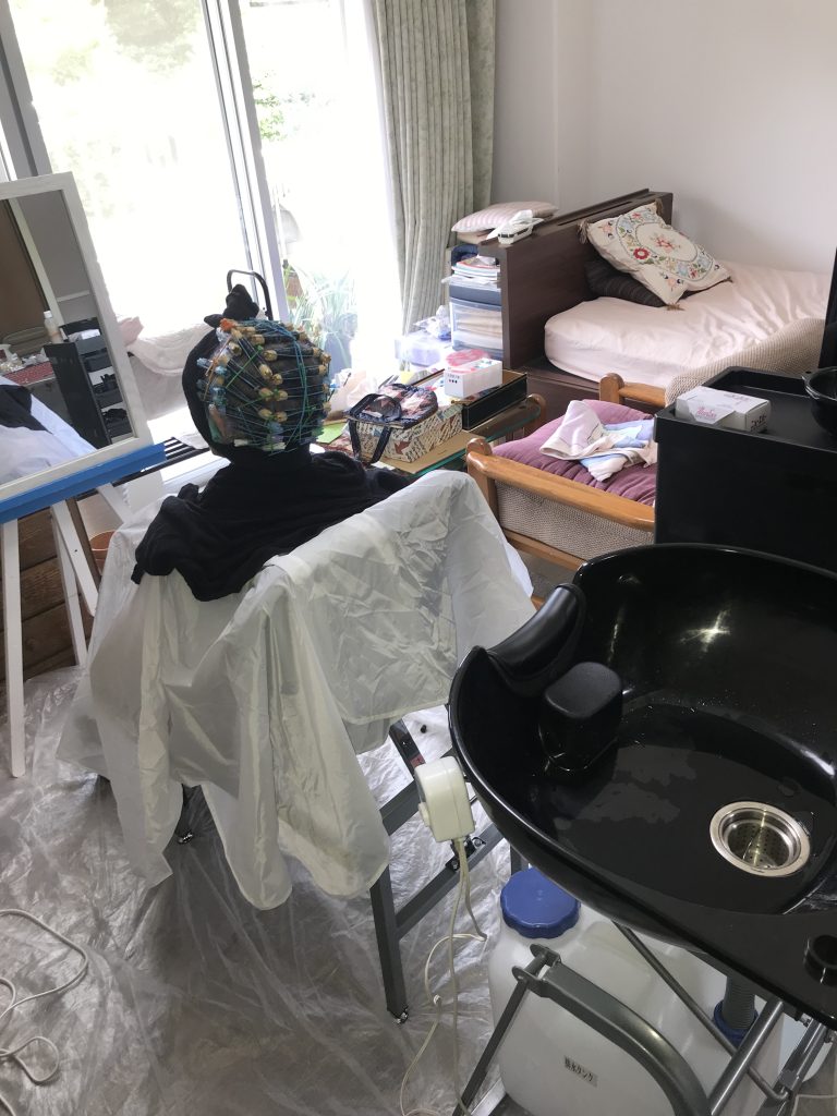 茅ヶ崎市にてカット・パーマの施術で訪問美容させて、頂きました。